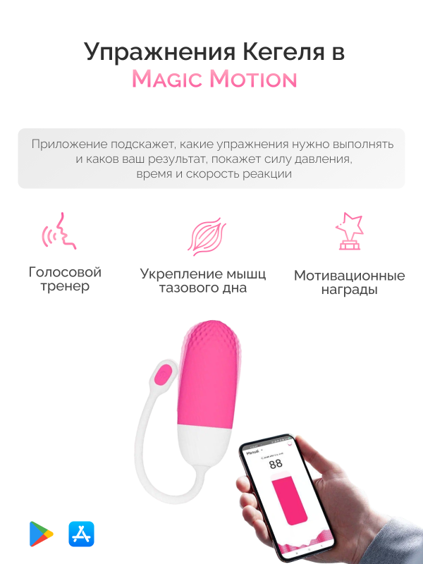 Также, в приложении имеются специальные тренировки мышц тазвого дна, что делает "игрушку" для удовольствия полноценным тренажером Кегеля!